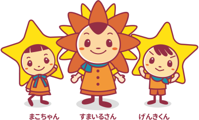 その他に花の名称の隣に3人の家族がいますが、この子達は左から、まこちゃん・すまいるさん・げんきくんと言いすまいるまこのオリジナルキャラクターです。