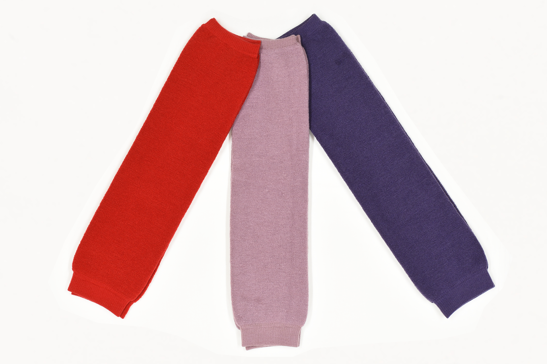 編みあがりはどれも色鮮やかで特に赤のレッグウォーマーは縁起も良さそうです。